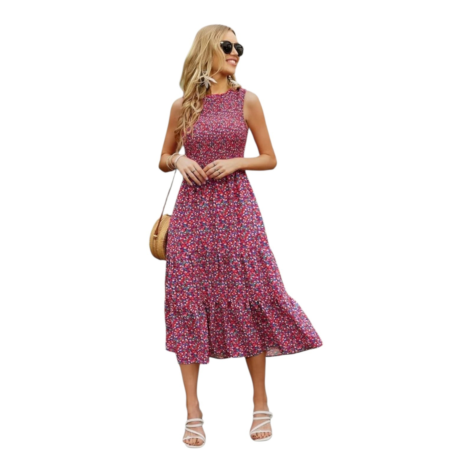 【Premium Material】This summer hits at ankle dress is made of 98%polyester and 2%viscose blend fabric, which gives you a comfortable & soft feeling and doesn’t fade or shrink. Floral dress makes you look more elegant.
