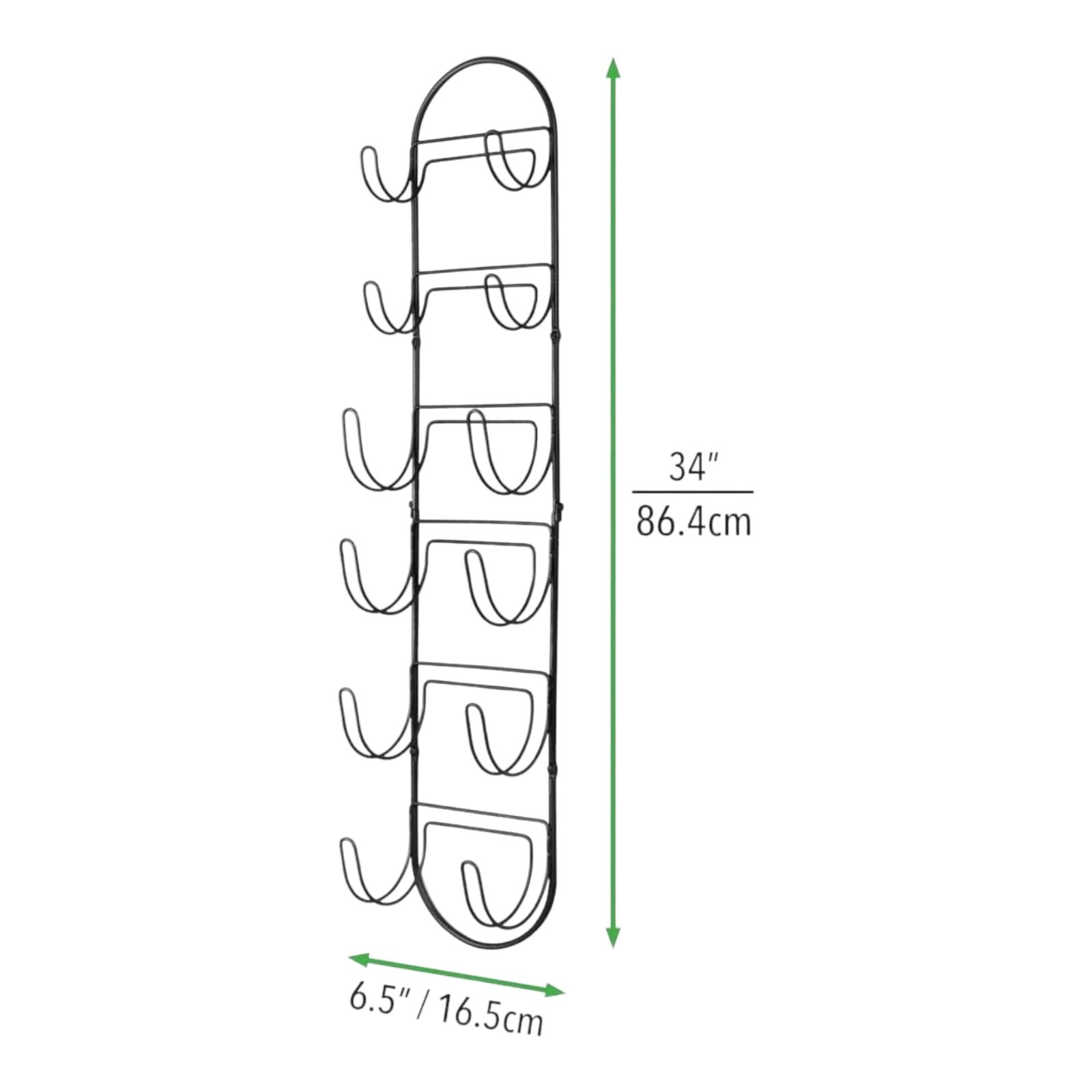 No more bathroom mess with the handy bathroom towel hanger from mDesign in a set of 2! Bring the feeling of a luxury hotel to your bathroom with the wall mounted towel storage rack from mDesign. Six levels of storage hold bath sheets, hand towels and face flannels all in one place. Keep towels clean and off the floor by storing them neatly on the rack. It easily mounts onto the bathroom wall with the included hardware – it is quick and easy to assemble. The slim design takes up minimal space, while still providing plenty of room to keep towels handy for ultimate convenience and order. The product details Towel hanger for the bathroom Set of 2 racks Space for towels on six different levels Can be wall mounted (hardware included) Material: Metal Colour: Black Dimensions: 16.5 cm x 12.1 cm x 86.4 cm